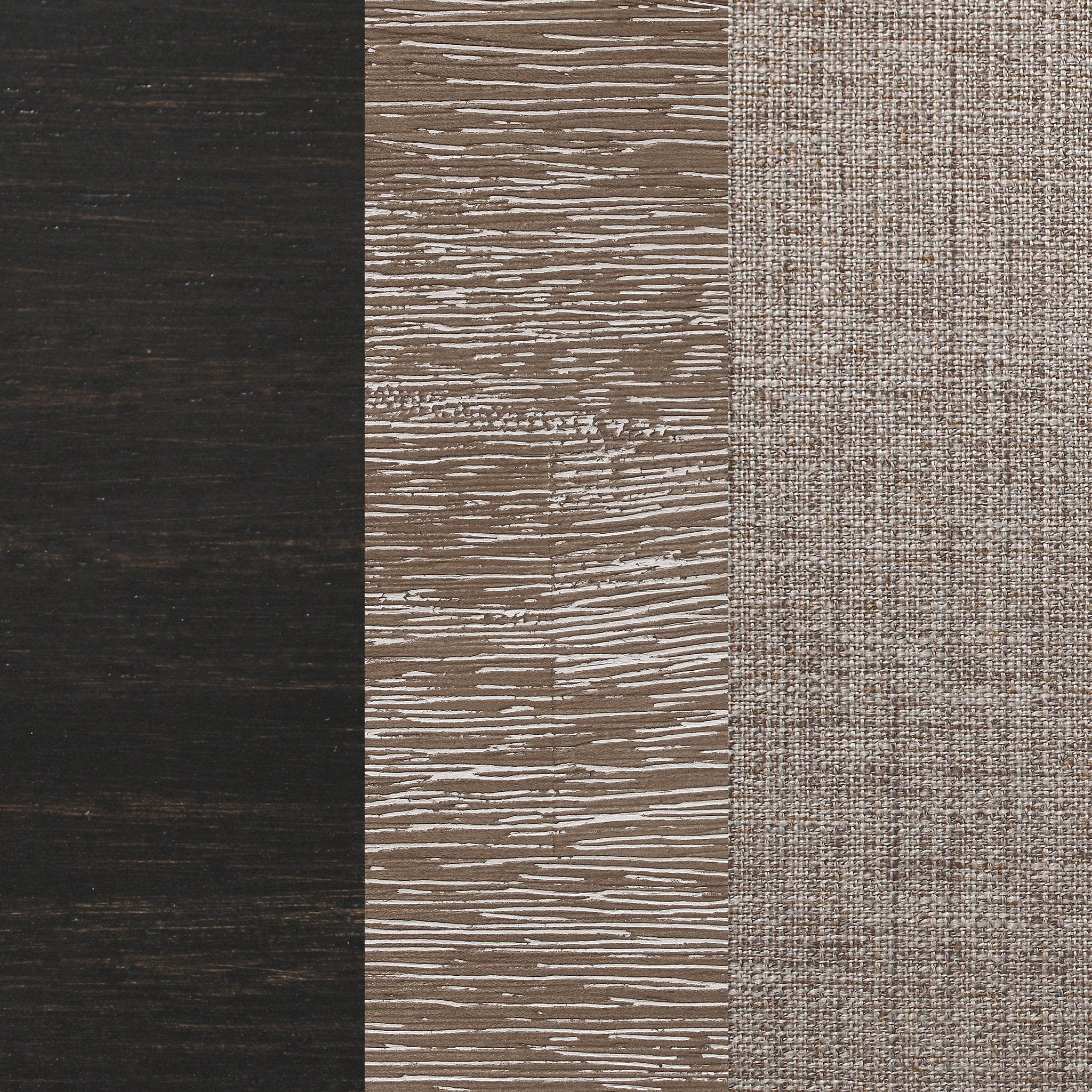 Traditional attitude is bold and rustic with modern updates adding style to your dining area. This five-piece dining set brings out the best in a hybrid aesthetic of farmhouse and mid-century looks with a soft, versatile color and finish palette and construction of Asian hardwoods and wood products. A rectangular table mixes finishes between its brown brushed finish top and a glam charcoal sand through finish base and legs. Curvy lines and turned legs add an alluring feel to a table playing host to brown finish ladderback chairs. A smoothly arched side silhouette with turned front legs creates a glam look, embellished with neutral and soft stone brown fabric seat upholstery.