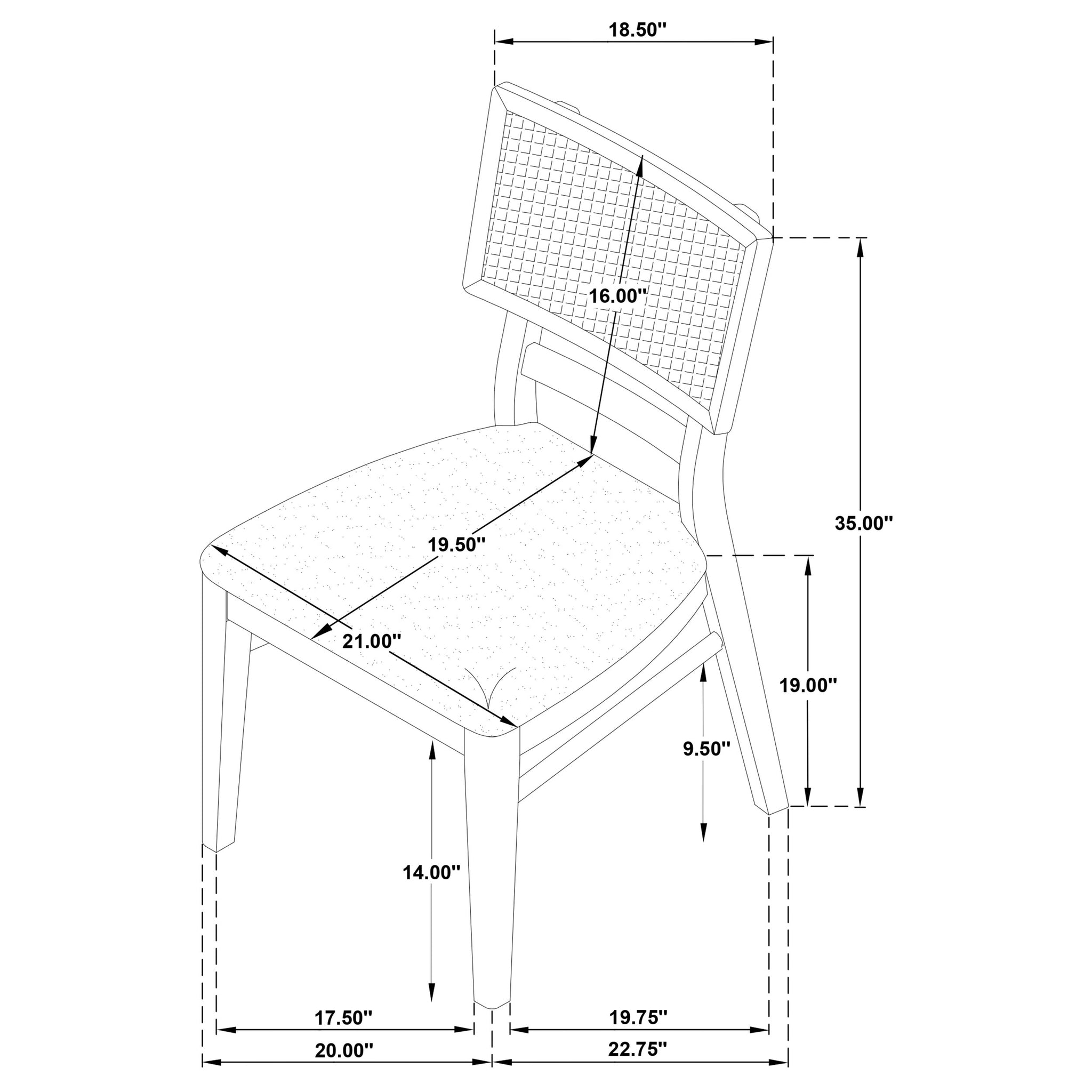 Transform your dining area with this exquisite dining set, featuring a spacious dining table, handcrafted dining chairs, and a beautifully designed sideboard cabinet. The table, made from solid wood, engineered wood, and oak veneer, offers a smooth rectangular top with an 18-inch extension leaf, providing ample space for up to 8 guests. Each dining chair is crafted with a natural wood frame, hand-woven radio weave cane backrest, and a foam seat cushion upholstered in beige fabric, ensuring both style and comfort. The standout of the set, the matching buffet, features ample storage with three spacious drawers and three cabinet compartments behind four doors, perfect for organizing dinnerware, linens, or other essentials. With its cohesive blend of craftsmanship, durability, and natural beauty, this dining set is perfect for creating a welcoming and stylish space for any occasion.