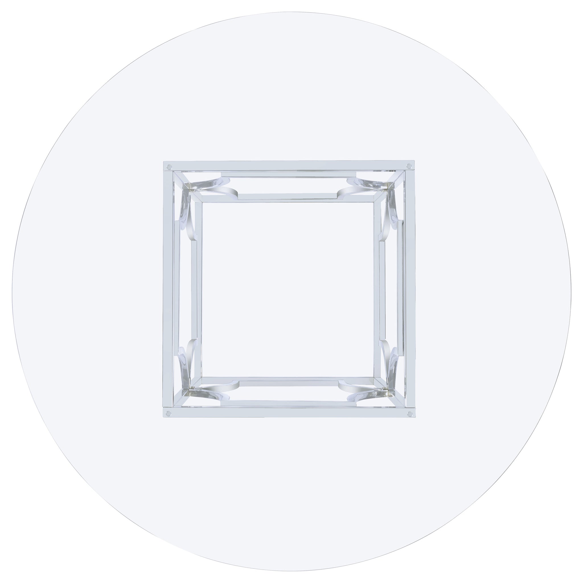 This round dining table creates a refined focal point with its clear tempered glass top and artful geometric base. The sculptural metal frame features intersecting curves and angles, electroplated in a high-shine finish for a bold, contemporary effect. Its open design keeps the space light, while the tempered glass adds a durable, easy-care surface for everyday use or entertaining.